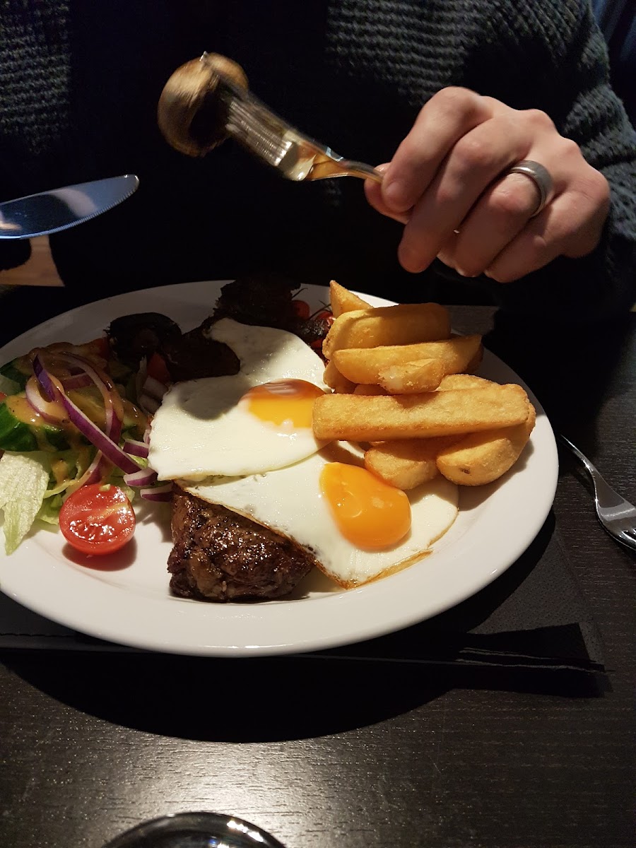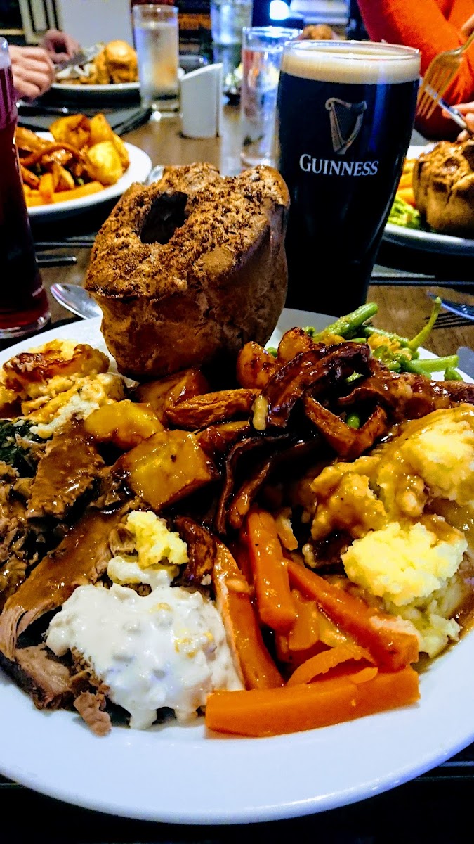 The restaurant serves a variety of delicious dishes, many of which are crowd favorites, such as the Sunday Carvery and Sunday Roast - a traditional treat that keeps locals coming back week after week. For a lighter meal, their Salmon and Prawn Salad or Tuna on Malted Wholemeal Bread Salad and Crisp offer fresh, satisfying options. For those craving a more substantial meal, the 10 Oz Sirloin Steak with Eggs, Cheese and Bacon Jacket Potato Salad, and Hunters Chicken Chips and Salad are popular choices that don’t disappoint.